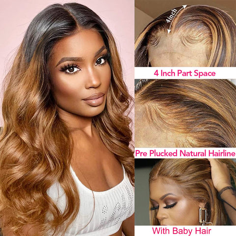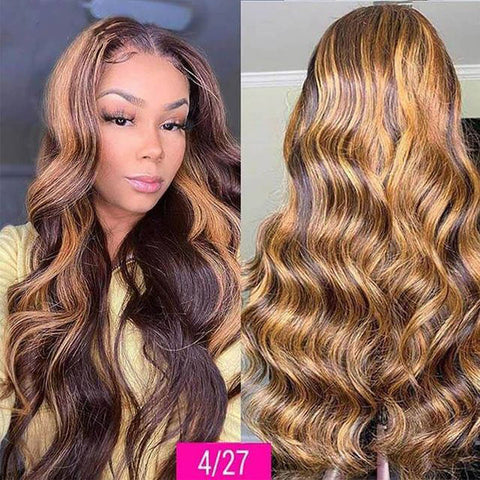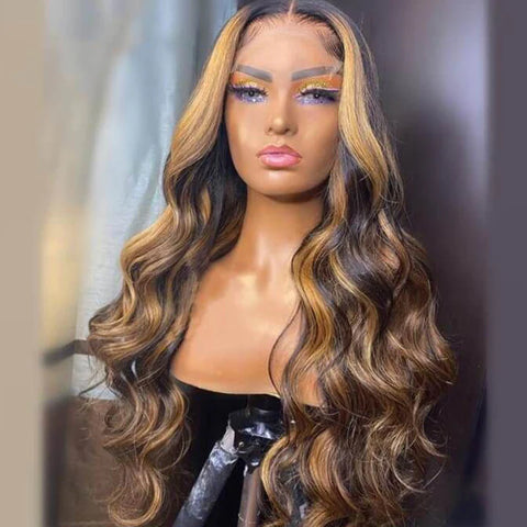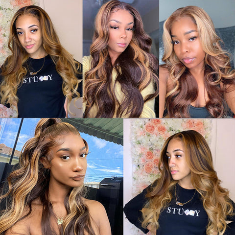 Ruilog Hair Piano Highligh color body wave Wig Human Hair 13x4 Lace Frontal Human Hair Wigs For Woman