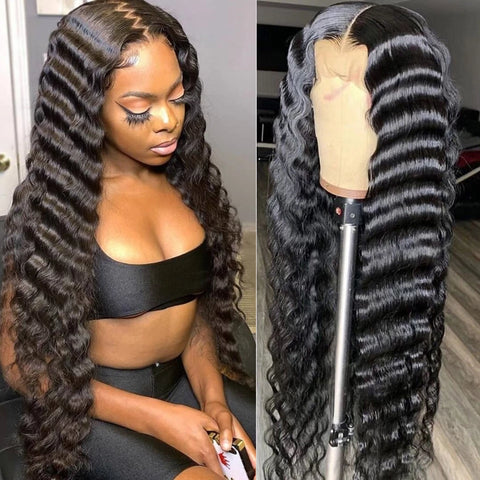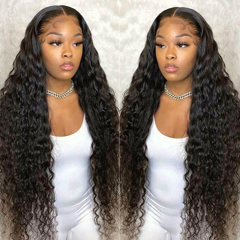 Ruilong Hair 13x4 HD Transparent Brazilian Deep Wave Lace Frontal Human Hair Wig 30 36 Inch Pre Plucked With Baby Hair 210% 250%Density Deep Curly Lace Frontal Wig For Women
